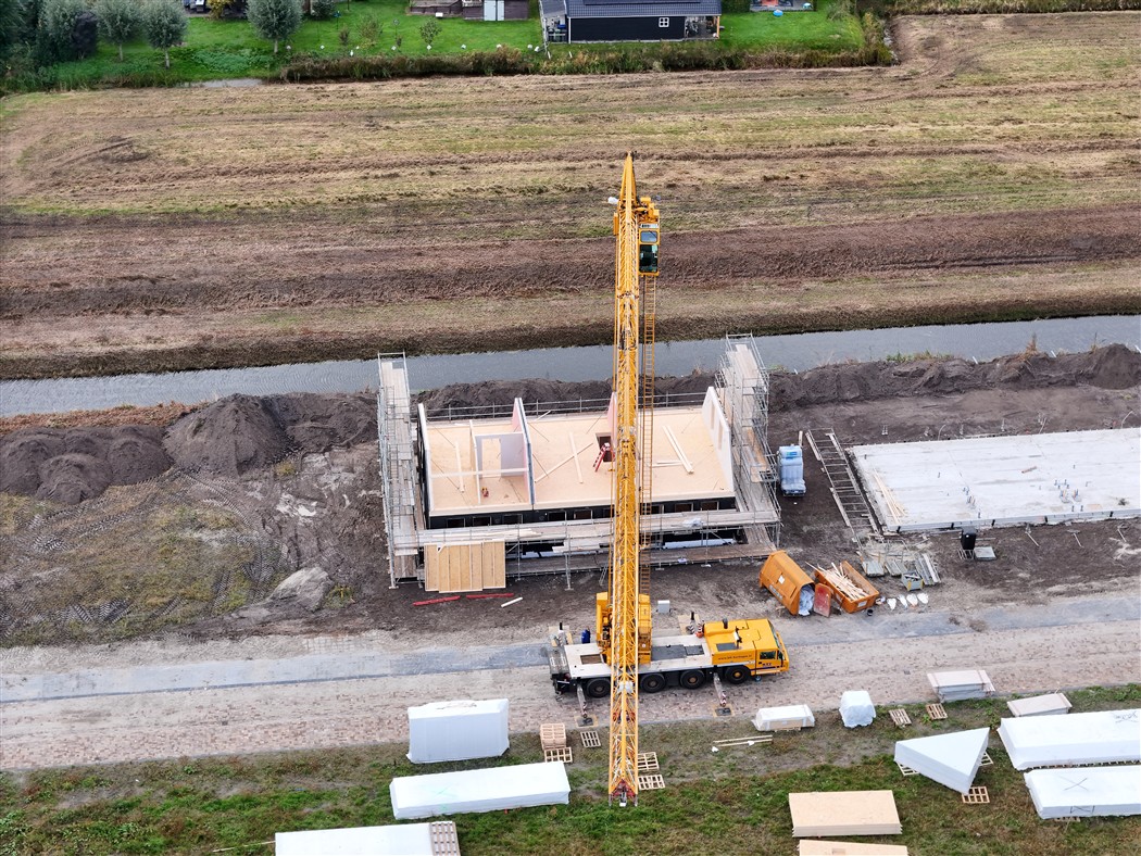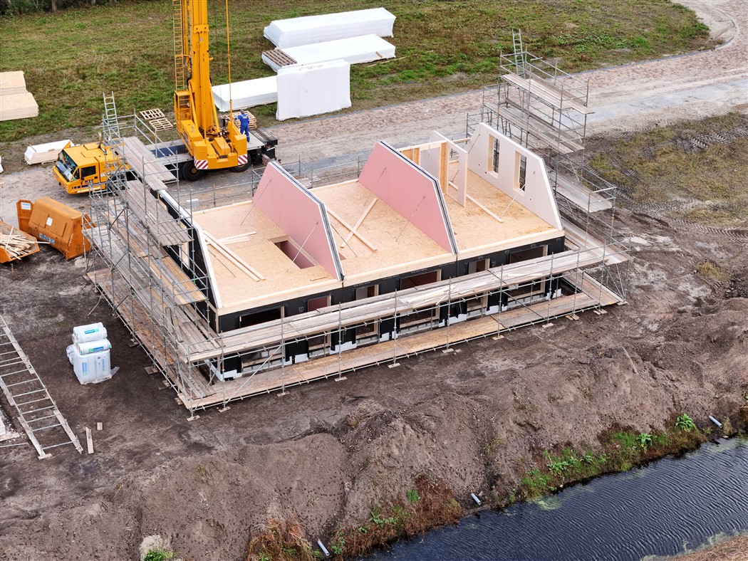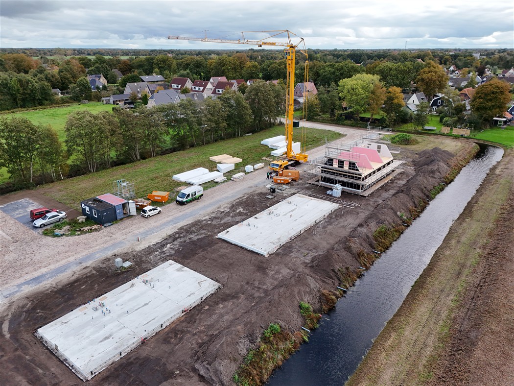 In Terwispel zijn we volop bezig met de bouw van tien starterswoningen. Deze week zijn de eerste drie casco’s geplaatst — een mooie mijlpaal in het project.
